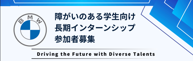 家でも就活オンライン事務局【26卒・27卒・28卒・29卒対象】BMW主催:障がいのある学生向け 長期インターンシップ 事前説明会実施日2025/11/10(月) 17:00~18:00対象者新卒2026年2027年2028年2029年既卒・その他―