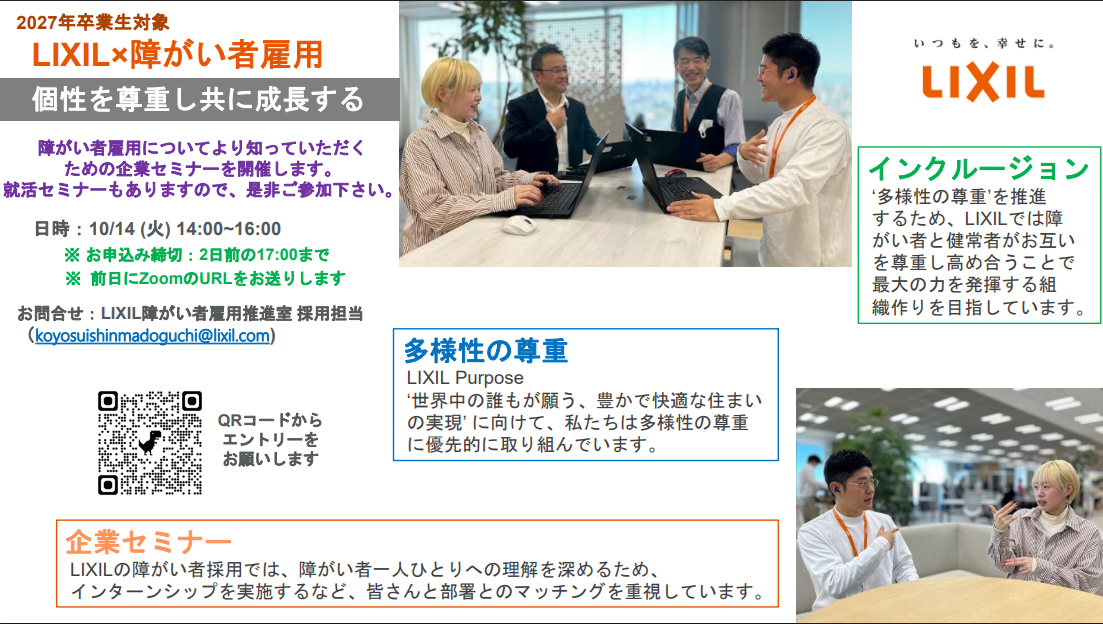 27卒向け 株式会社LIXIL×障がい者雇用 企業セミナー